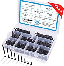 【Varity Sizes】 Includes 400pcs coares thread screws of 9 sizes(16/20/25/30/35/40/50/60/70mm),different sizes bring convenient choice for your project. screws in a plastic case with clear label that easy to identify screw sizes. 【Advanced Material】 Screws made of high-quality black steel, durable and sturdy, high in strength, non-deforming, xylan plated can improve the ability of corrosion resistance and anti resistance, it can be reserved longtime. 【Multi Purpose 】Coarse threads have faster attack speed, durable and sturdy,(bugle head/ phillips drive)suitable for multiple tools, sharp points for self tapping into wood, furniture and mild steel, screws are primarily used for woodworking both indoor and outdoor.