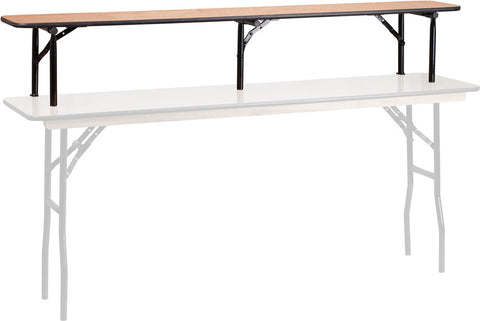 With the inclusion of a riser you can convert your standard table into a bar top or serving table. The brackets adjust easily with the twist of the knob to ensure that the riser is safely fastened to the support table. The legs feature non-marring plastic glides to protect the surface of the table below.
