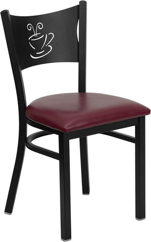 HERCULES Series Black Coffee Back Metal Restaurant Chair - Burgundy Vinyl Seat