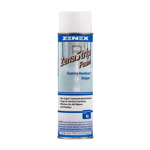Heavy duty stripper/cleaner for removing soil and wax build-up on baseboards, ceramic tiles and hard-to-reach areas. Contains a superior heavy duty clinging foam, thus stays in contact longer on vertical surfaces.   Contains a superior heavy duty clinging foam, thus stays in contact longer on vertical surfaces. Specifically formulated foaming baseboard stripper with special powerful cleaners which allow soiled areas to be treated while keeping them looking clean and attractive. Application and Uses: For use on baseboards, tiles, enamel, corners, porcelain. Removes scuff marks, wax build-up, grease and grime during normal stripping operations